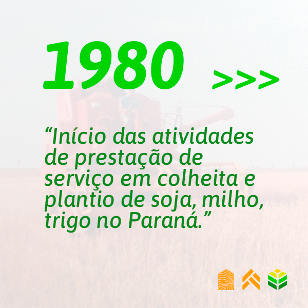 O crescimento da empresa teve início com a prestação de serviços de colheita no Paraná. Em 1998, o Sr. Célio Ribeiro (in memoriam) estendeu um convite para a equipe, convidando-os a colher milho e soja em Bom Jesus da Penha, no sul de Minas Gerais. Ao levar uma colheitadeira que se destacou na região, a demanda cresceu, levando à incorporação de mais máquinas e colaboradores do Paraná. Em 2004, a empresa deu mais um passo, arrendando terras para o plantio de soja na região.